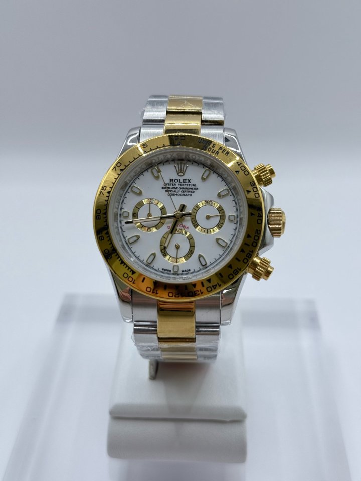 데이토나 화이트다이얼 콤비 오토무브먼트 사이즈 사진참조 베젤안쪽 시리얼 넘버각인 슈퍼노바 야광탑재 6시방향 크라운 각인 316고강도 스틸
