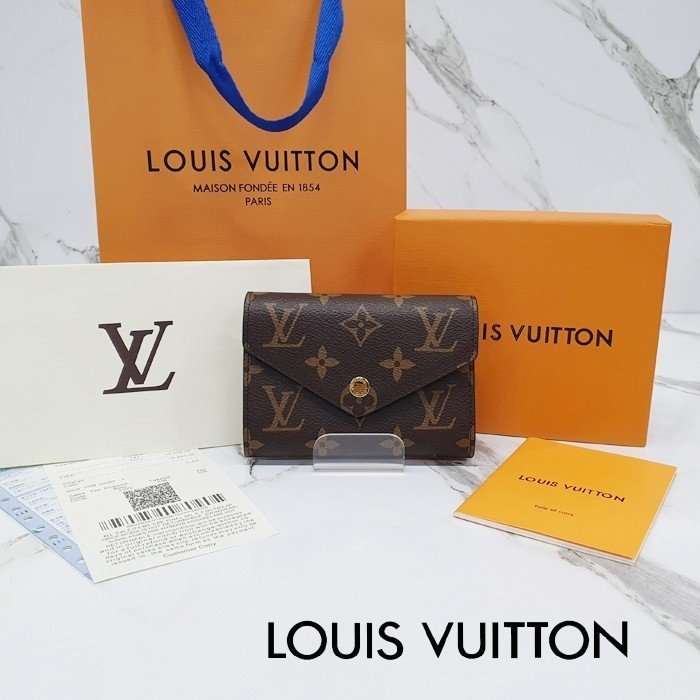 🔘색상 : 브라운 🔘사이즈 : W12cm x H9.5cm x D2.5cm 🔘기타정보 : -제품 NO. M62472 -여성용 반지갑 -소재 모노그램 캔버스/최고급 소가죽 -포켓 지폐1/카드6/보조2/코인1 -본품+더스트+박스+책자+영수증+쇼핑백 풀구성