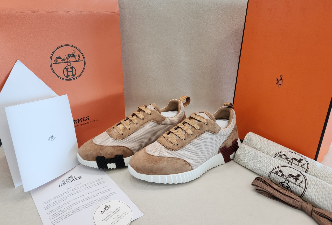 [국내배송]에르메스 바운싱 스니커즈 그래픽 메쉬 스웨이드 고트스킨 & 베쥬 아흐질