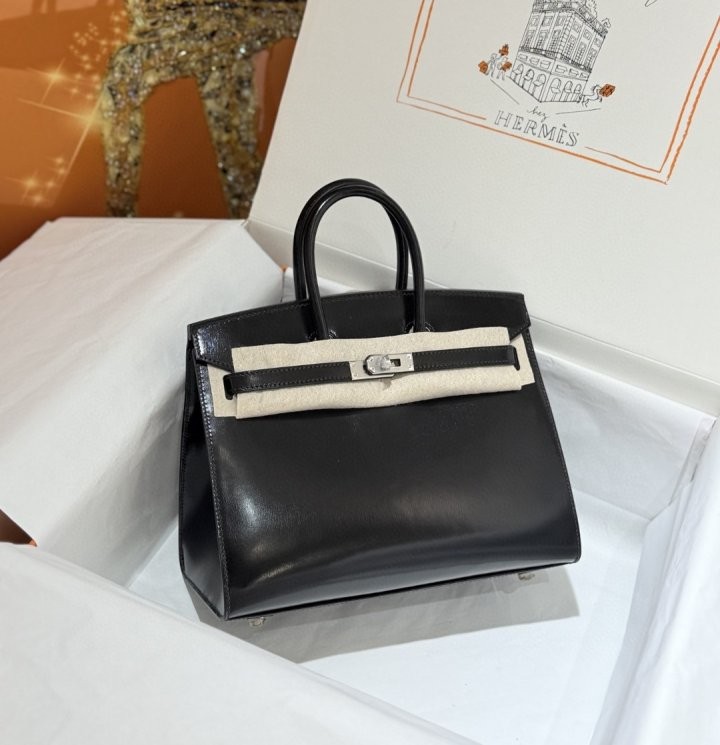 ✔ Box Calf 특유의 유광 텍스처와 블랙 실버 파츠