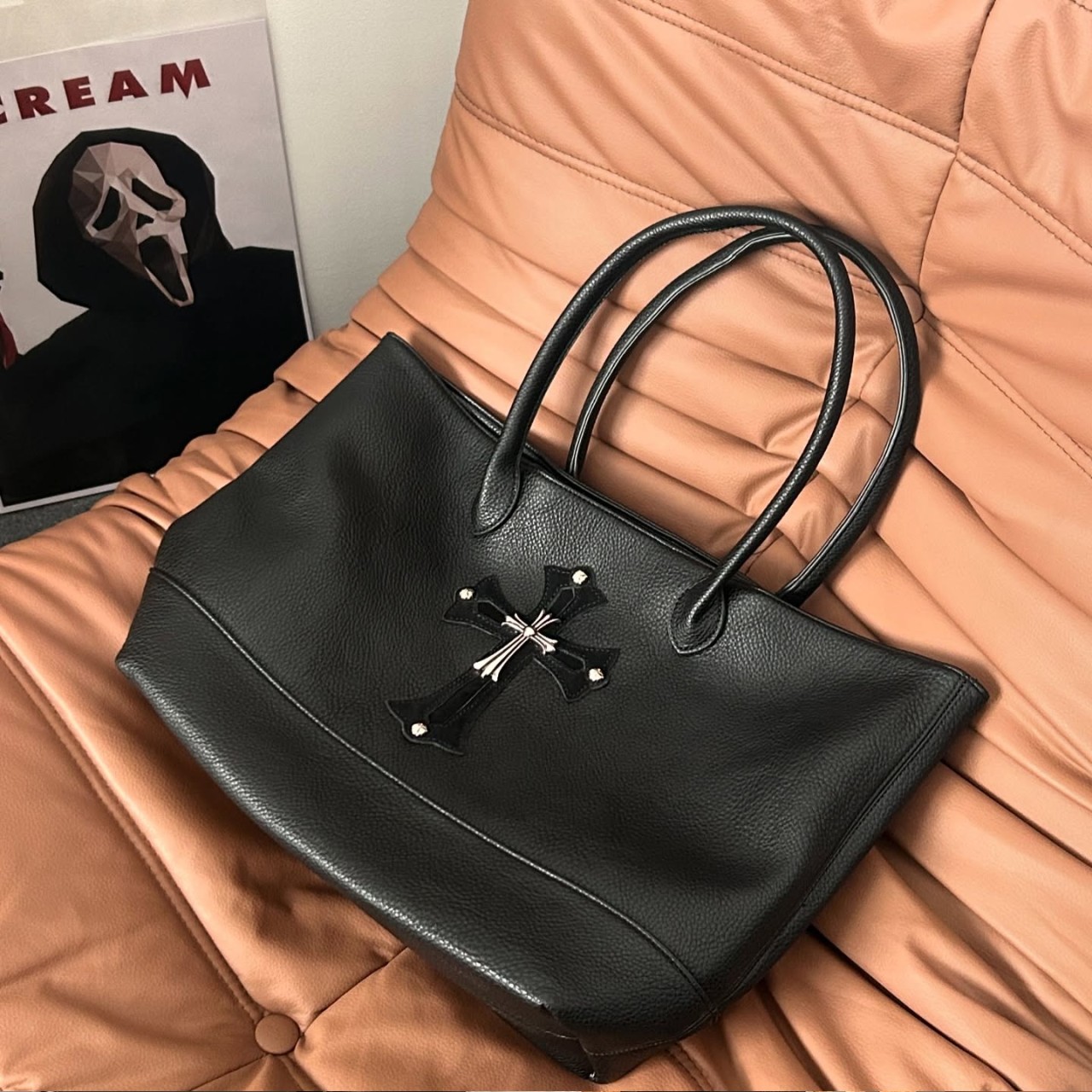 ■세메터리 십자가 가죽 자수와 함께 뒷면 하단에 크(롬)하츠 두루마리 로고가 은빛 포인트로 들어가있는 유니크하고 스타일리쉬한 세메터리 백 입니다.