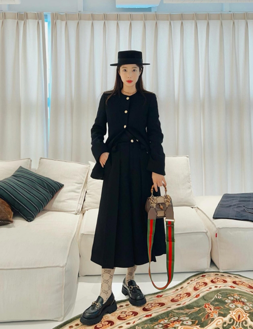 [기은세]gucci 뱀부 1947 미니 탑 핸들백(GG점보/브라운)
