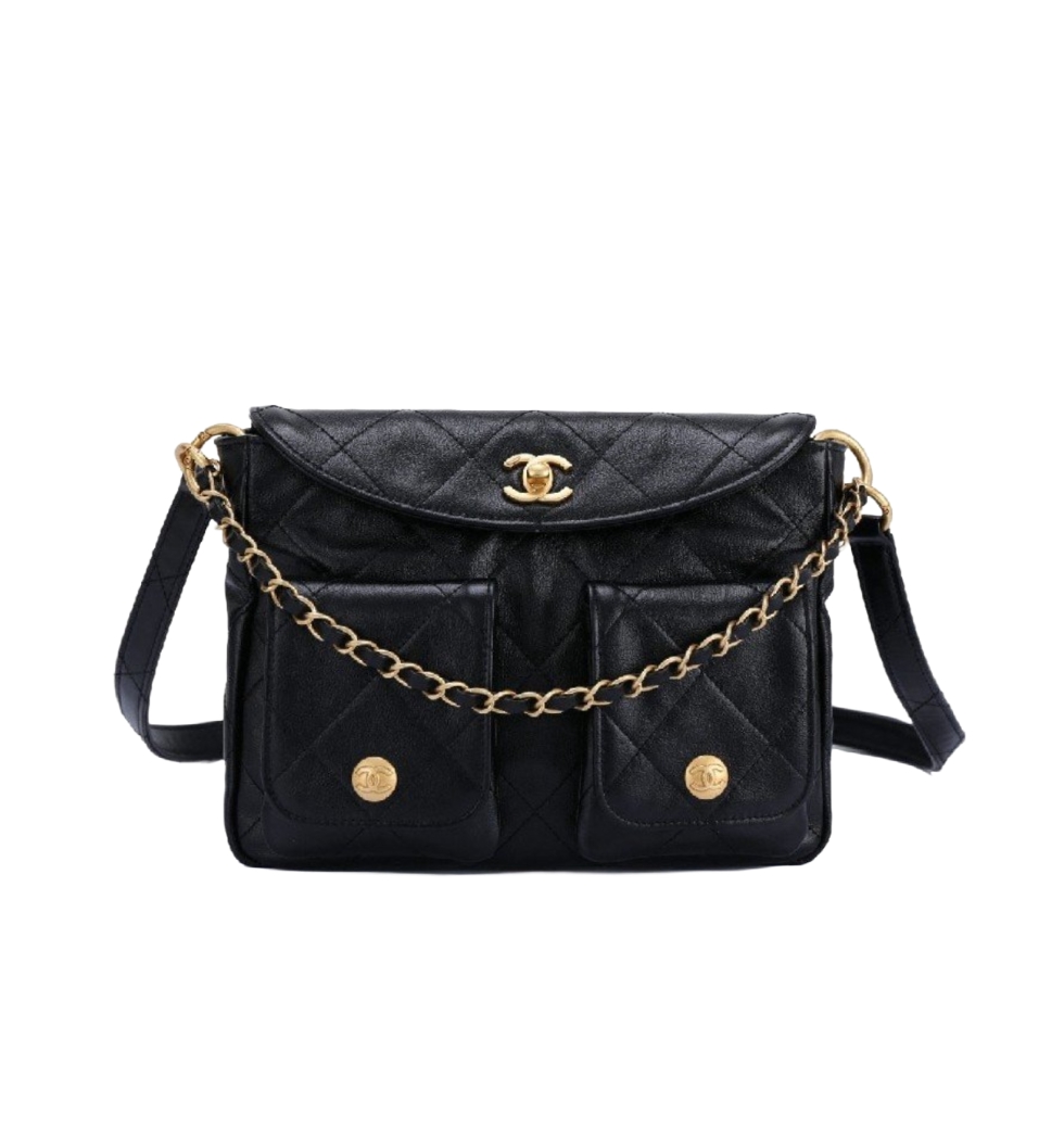 더블 포켓 호보 백 스몰(블랙/금장/램스킨)