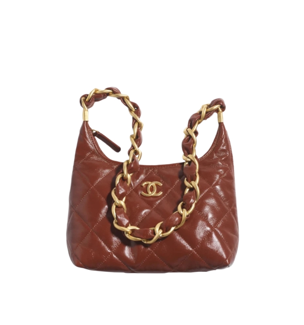 빅체인 빈티지 스몰 호보백(브라운/금장/램스킨)
