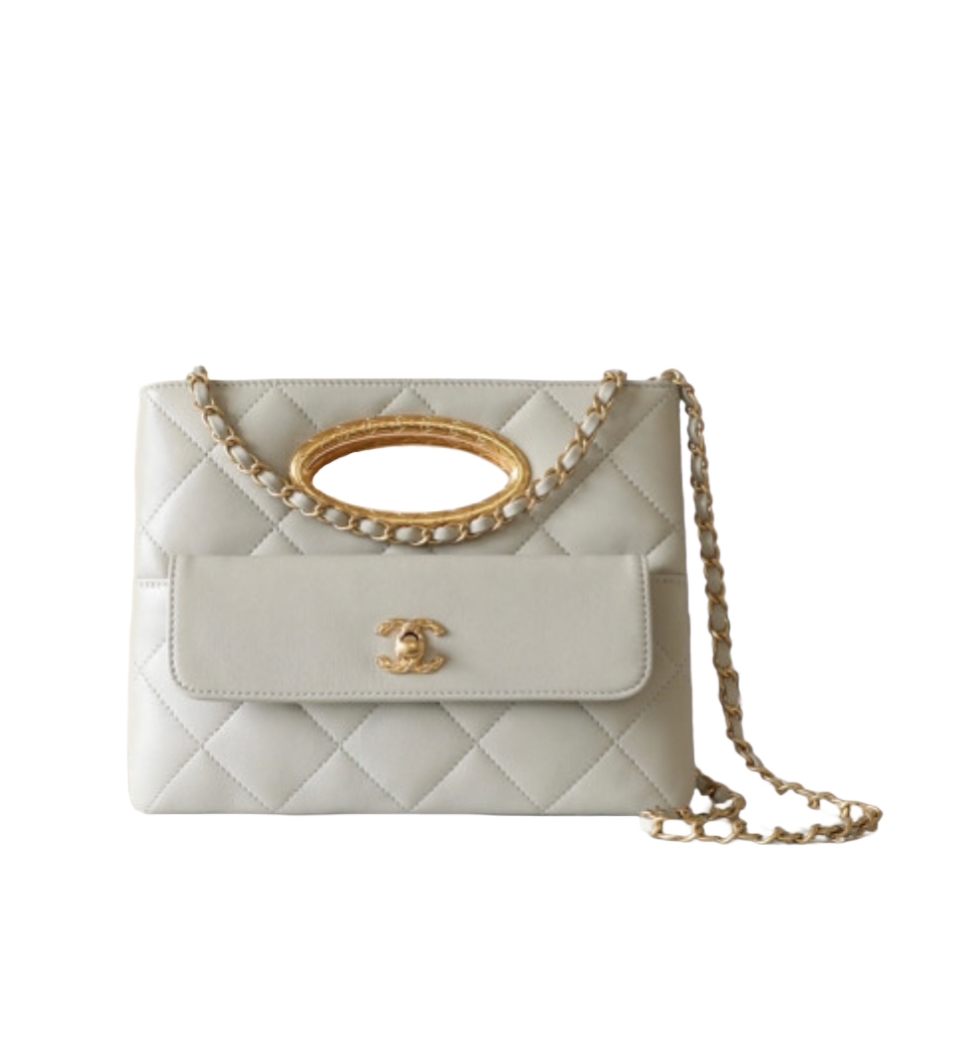 [프리미엄/해외배송]체인 클러치 백(화이트/금장/램스킨)
