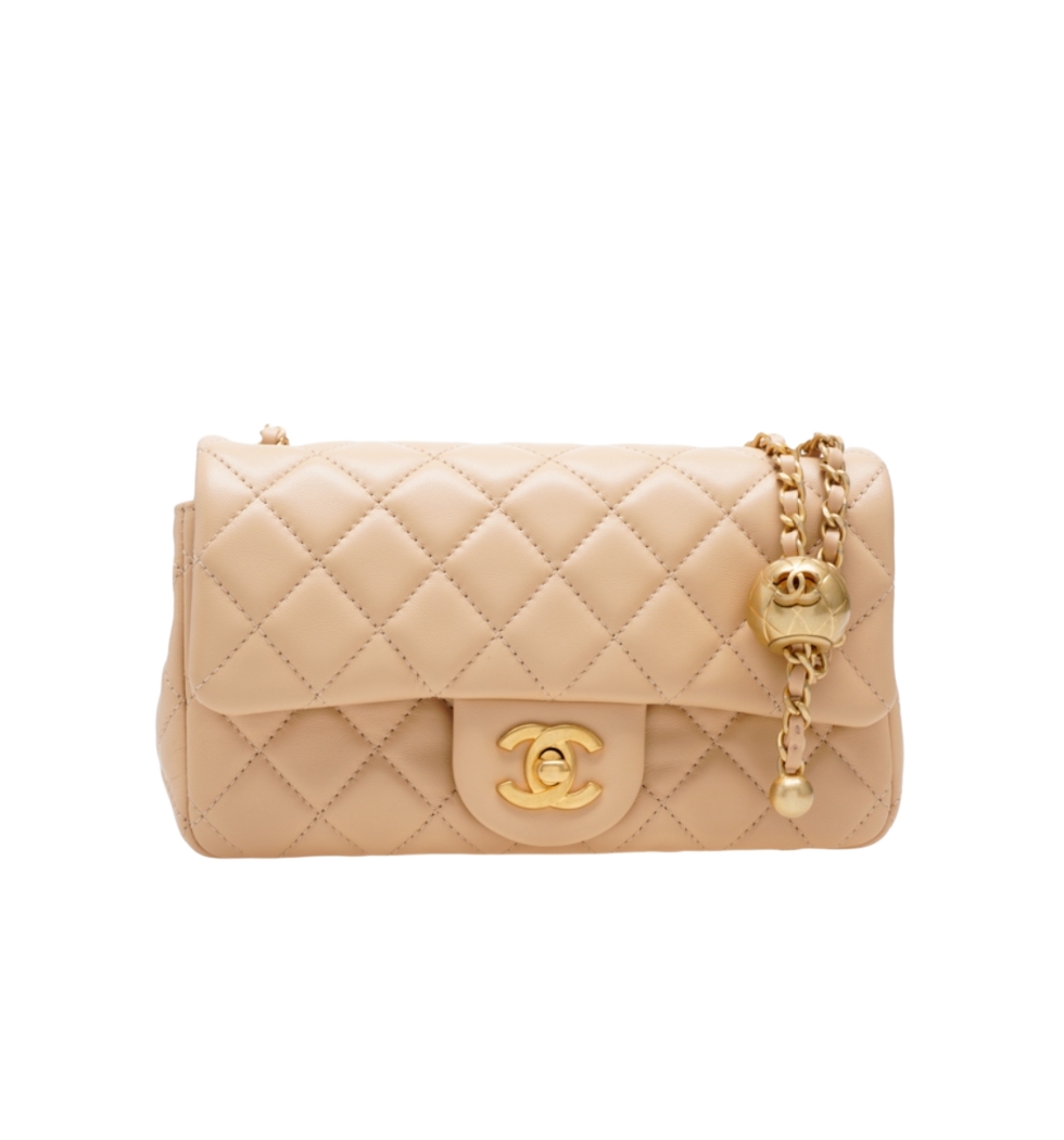클래식 골드볼 미니 플랩 백(베이지/금장/램스킨)
