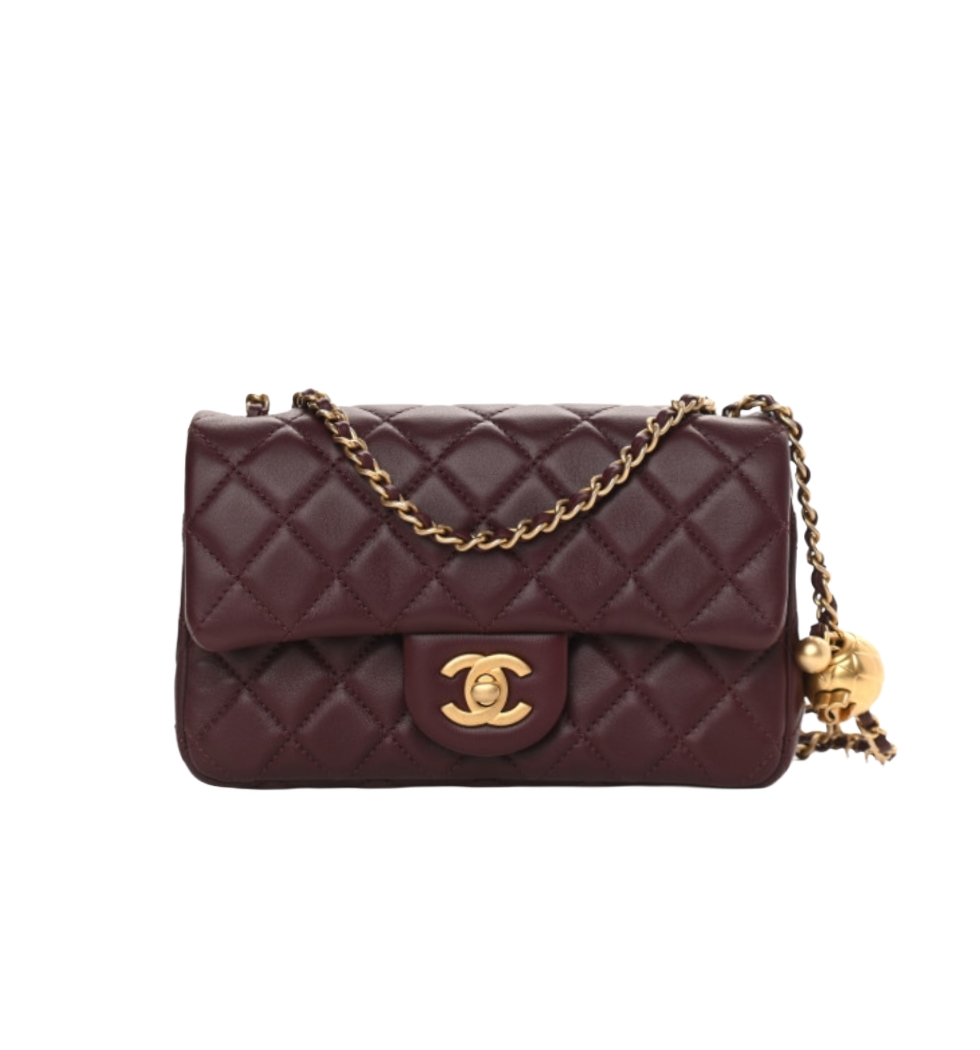 클래식 골드볼 미니 플랩 백(버건디/금장/램스킨)