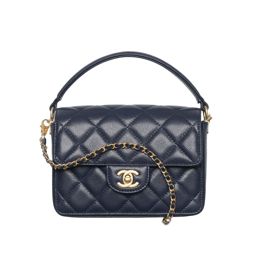 클래식 탑핸들 박스 미니 플랩 백(네이비/금장/캐비어)