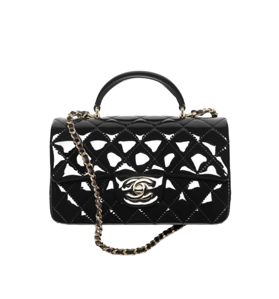클래식 플랩 탑핸들 미니 백(블랙/금장/페이턴트)