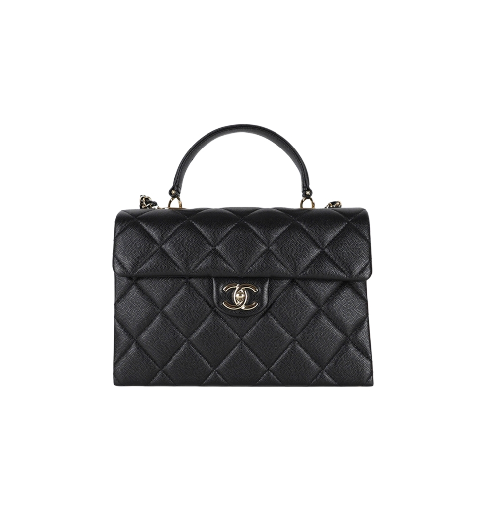 탑핸들 체인 미디엄 플랩 백(블랙/금장/캐비어)