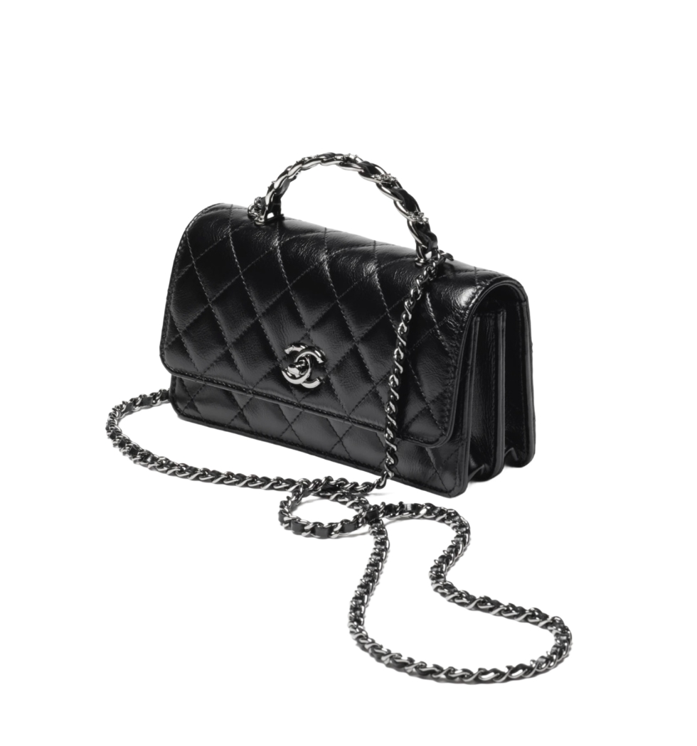 WOC 체인 탑핸들 더블 플랩 백(블랙/은장/카프스킨)