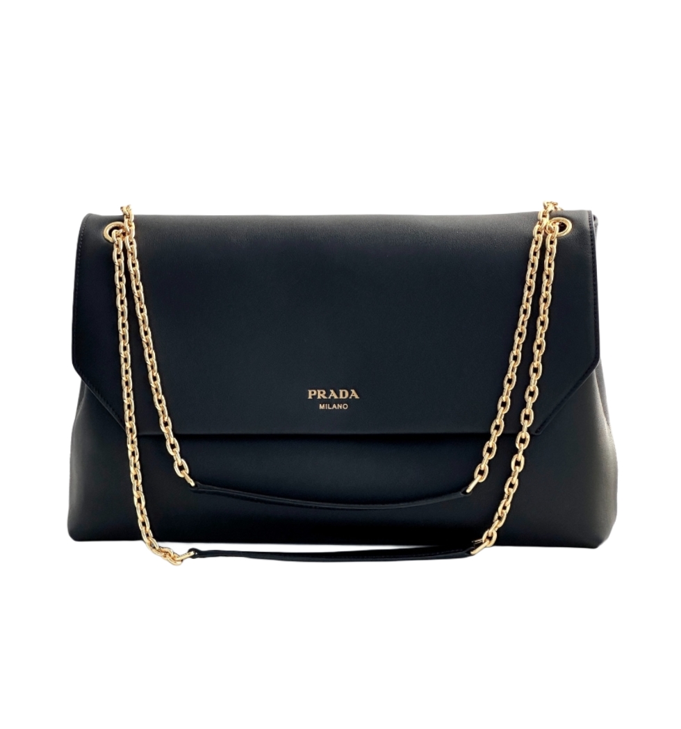 [프리미엄/해외배송]프라다 플랩 체인 레더숄더백(블랙)