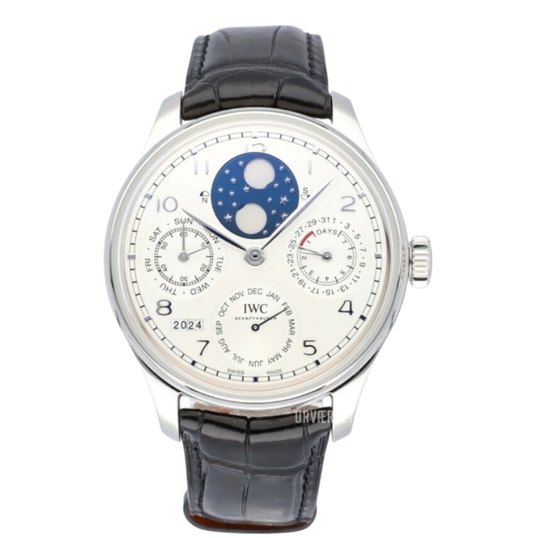 IWC 포르투기즈 Perpetual Calendar 44mm IW503406 Platinum Leather Strap Arabic Numerals White Dial[APS]
