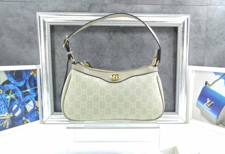 베이지/화이트 GG 수프림 캔버스 오트밀 레더 트리밍 코튼 리넨 안감 더블 G 조절 가능한 탑 핸들, 19cm 드롭 탑 지퍼 잠금장치