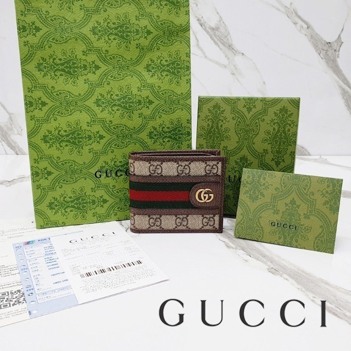 🔘색상 : 브라운 🔘사이즈 : W11cm x H9cm 🔘기타정보 : -제품 NO. 597606 -남성용 반지갑 -소재 GG 수프림 캔버스/최고급 소가죽 -포켓 지폐2/카드8/보조2 -본품+더스트+박스+책자+영수증+쇼핑백 풀구성