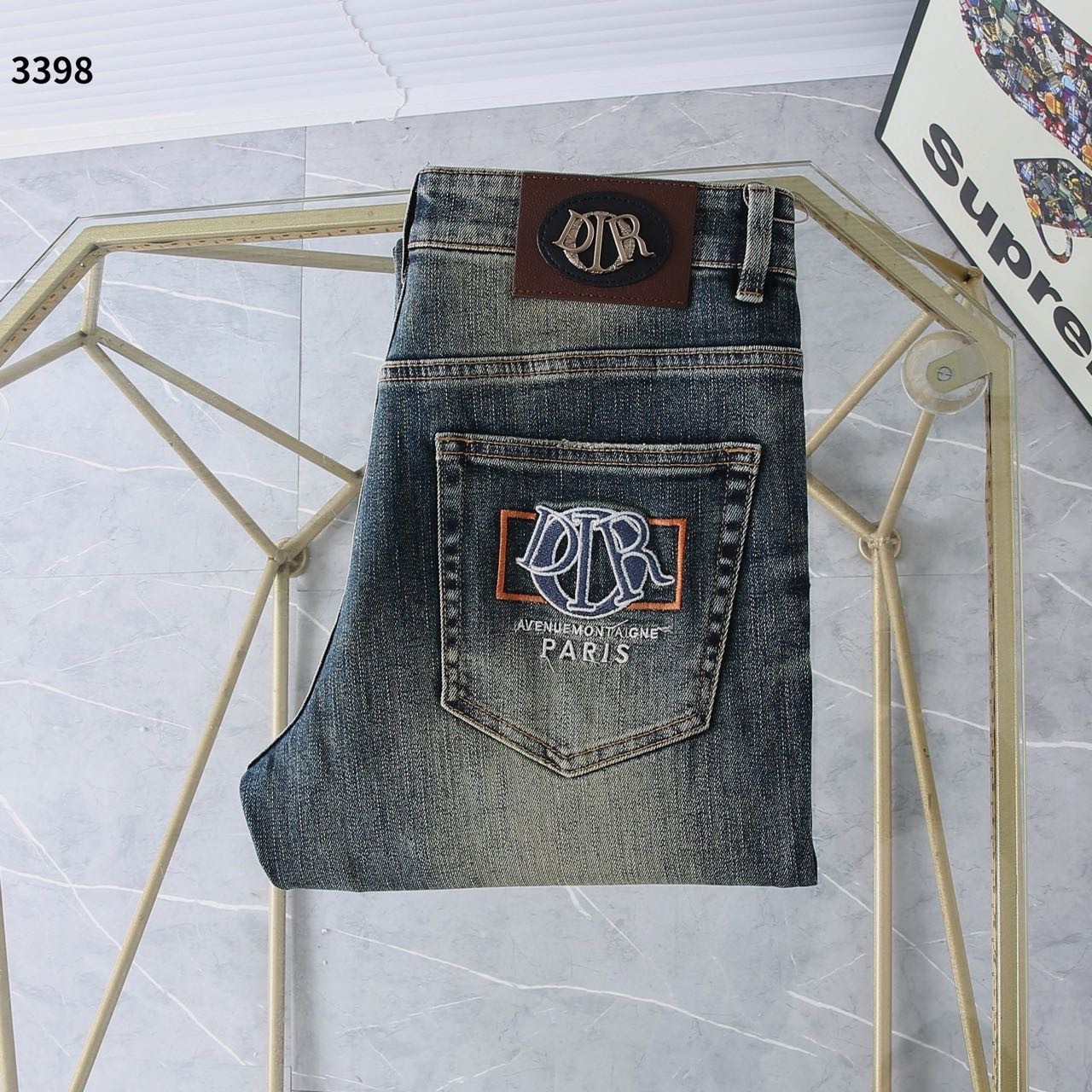 [국내배송]디올 신상 자수로고 레더패치 스판 데님진