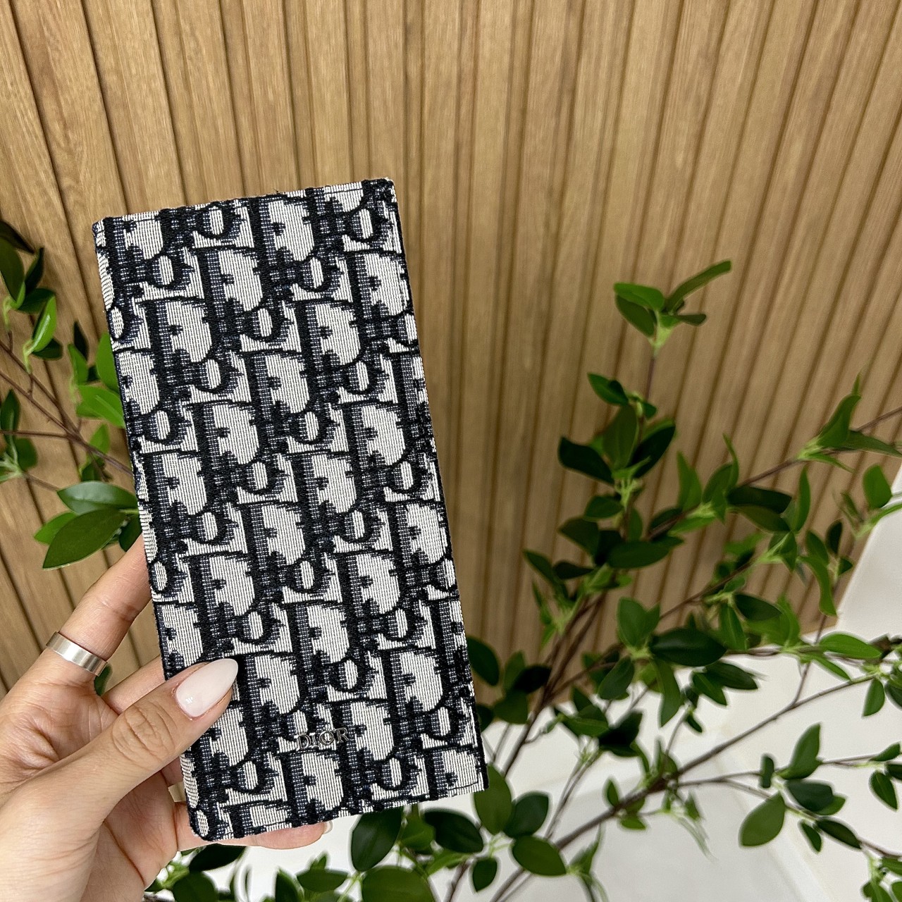 세련된 스타일의 실용적인 장지갑입니다. 그레이네이비 컬러의 Dior Oblique 자카드 소재와 내부의 블랙 스무스 송아지 가죽 소재로 제작되었습니다. 세로형 반지갑 실루엣으로 앞면의 루테늄 피니시 브라스 Dior 시그니처가 돋보입니다. 지폐 홀더 4개, 카드 슬롯 16개, 지퍼 동전 수납공간 1개로 구성되었습니다. 데일리 아이템으로 이상적인 넉넉한 공간의 우아한 지갑입니다.