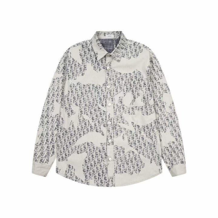 그레이 올오버 Dior Oblique 카스리 모티브 셀비지 디테일 노출된 버튼 플래킷 Dior 인그레이빙 버튼