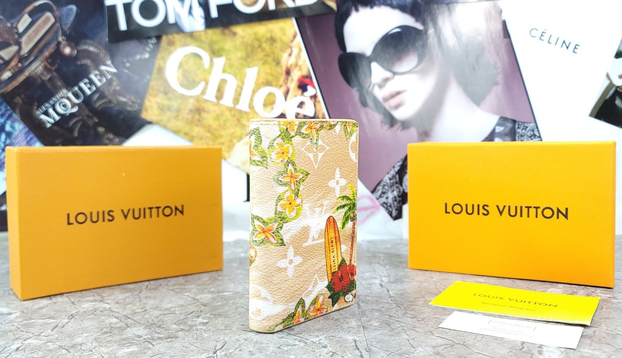 카우하이드 가죽 소재의 트리밍 하와이안 베이지 모노그램 서핑 코팅 캔버스 카드 슬롯 3개 내부 포켓 5개 외부 포켓