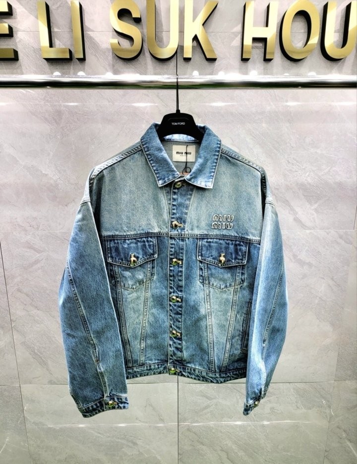 미우미우 로고 데님자켓 입고 되었습니다. 원단을 워싱 가공하여 젠느낌과 99%동일하며 전체적인 퀄리티 쉐입 젠과 구분하기 어렵습니다. 퀄리티 믿고 주문 주세요