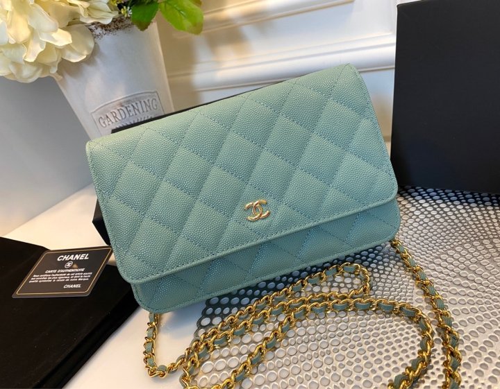 사이즈 : 19.2 X 12.3 X 3.0 cm 색상 : 민트 /하드웨어 금장 소재 : 캐비어
