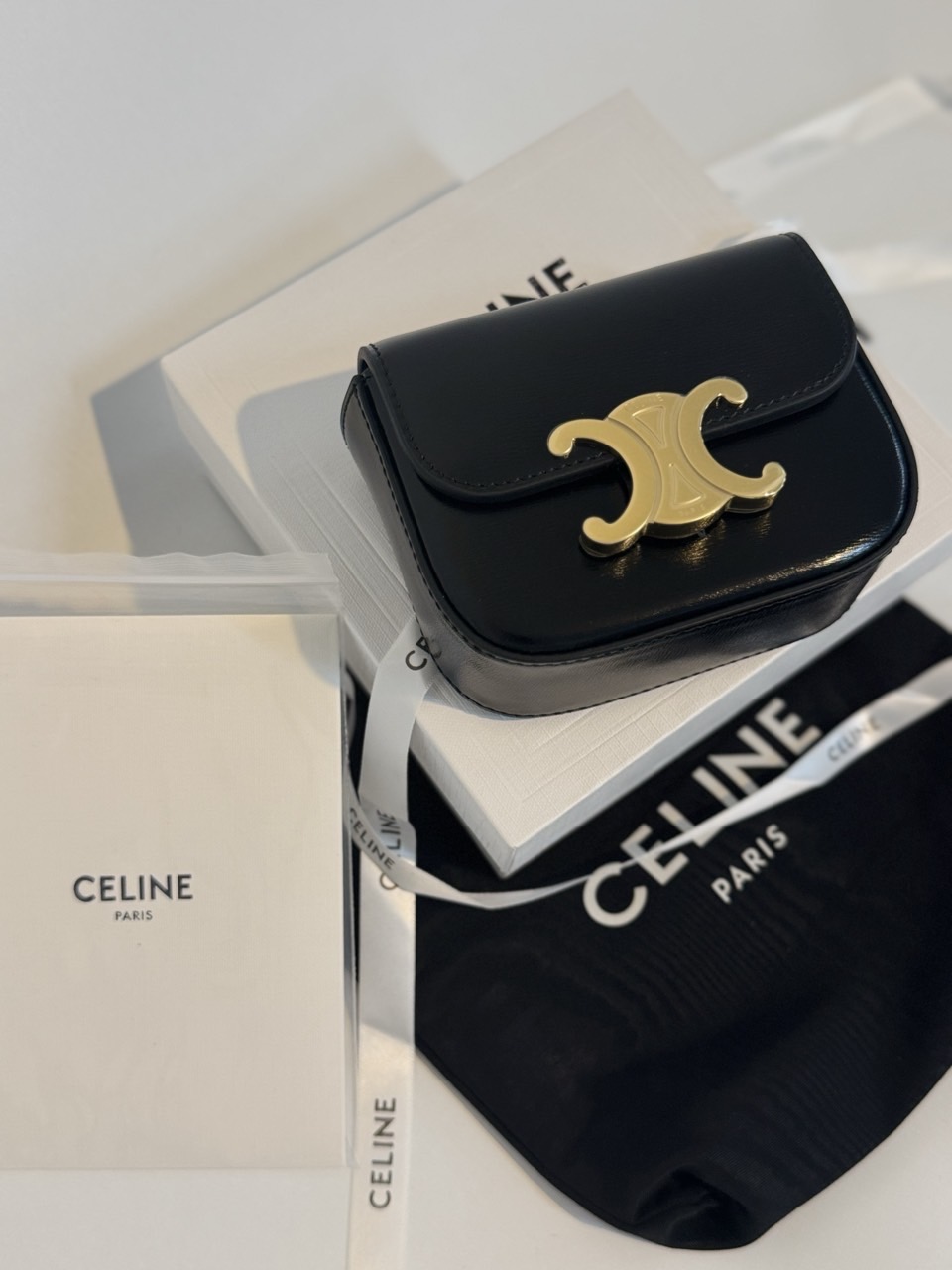 컬러 – 블랙 / 트리옹프 골드 메탈 소재 – 광택감 있는 고급 카프스킨 구성 – 본품 / 박스 / 개런티카드