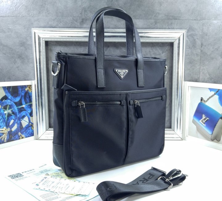 플랫 가죽 핸들 탈부착이 가능한 맞춤 조절형 나일론 테이프 숄더 스트랩 전면 에나멜 메탈 트라이앵글 로고 지퍼 클로저 외부 지퍼 포켓 4개 내부 지퍼 포켓 및 패치 포켓 로고 프린트 리나일론 라이닝
