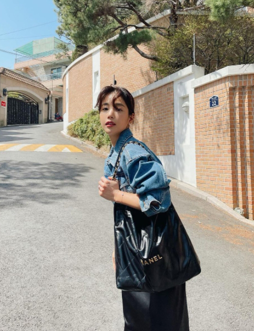 [기은세]chanel *정품가죽* 22백 미디엄 핸드백(블랙/금장/카프스킨)