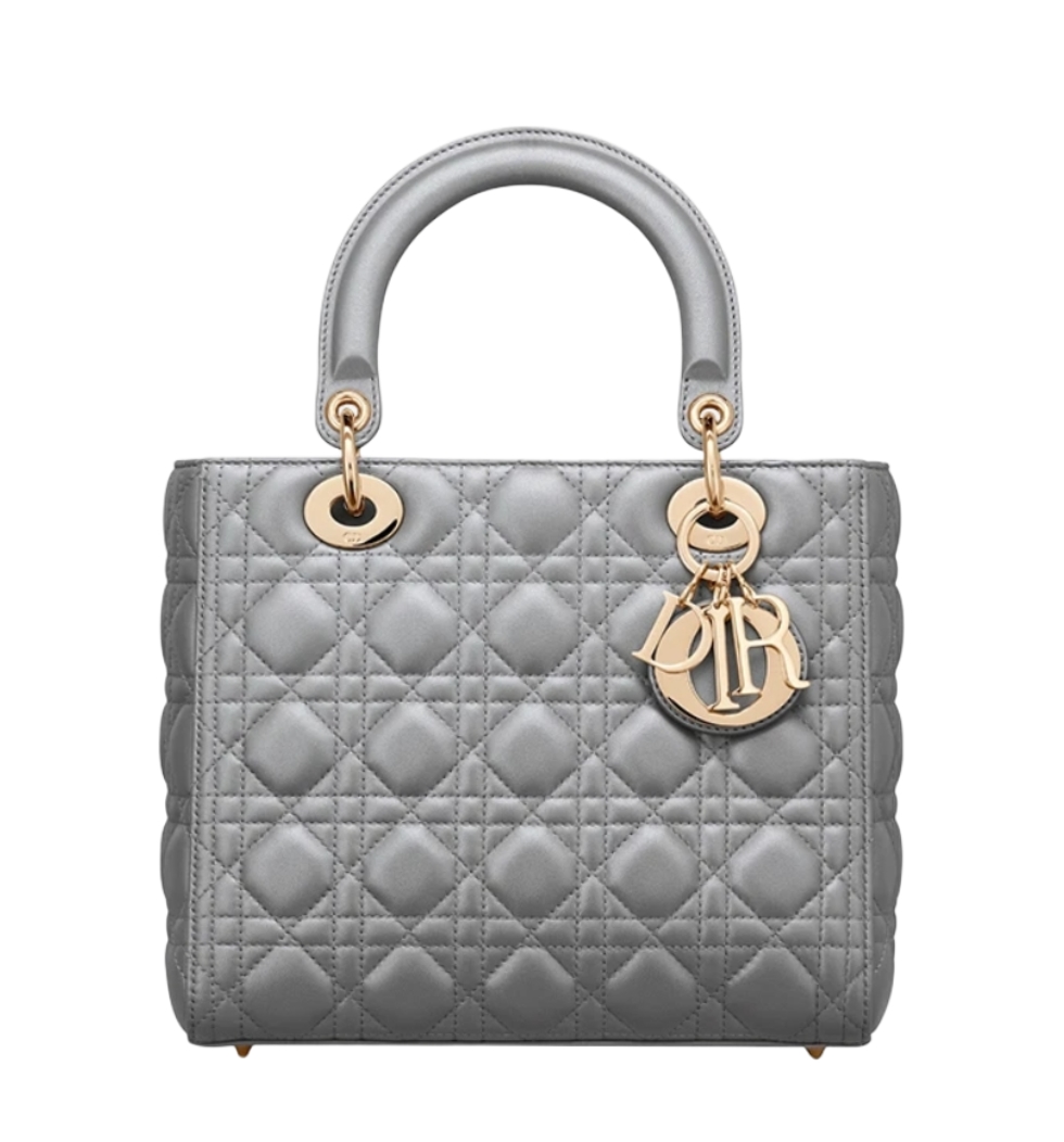 레이디 디올 미디엄백(오팔린 그레이 펄/까나쥬/램스킨)