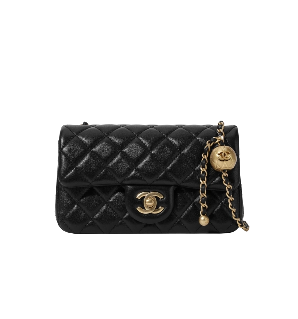 *정품가죽* 클래식 골드볼 미니 플랩백(블랙/금장/램스킨)