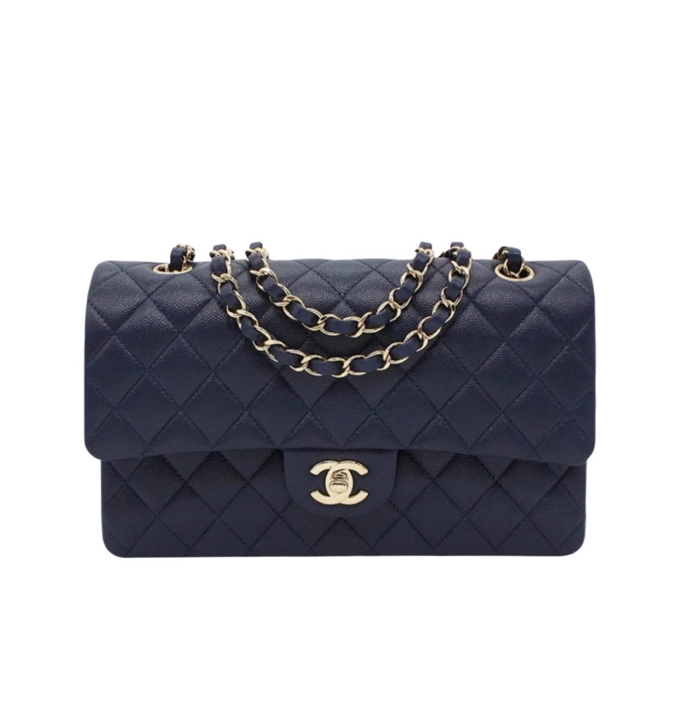 *정품가죽* 클래식 플랩백 미디엄(네이비/금장/캐비어)