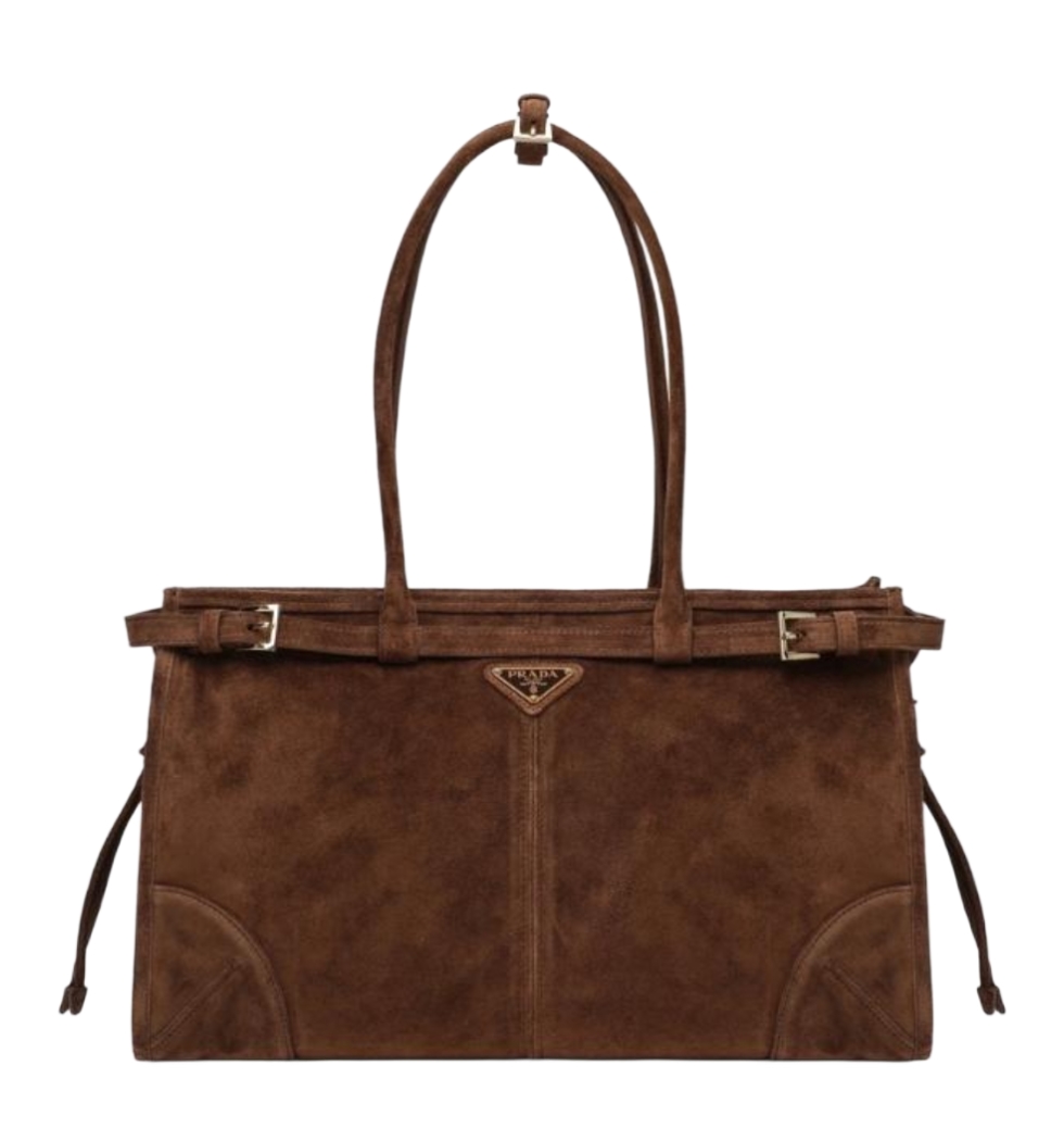[프리미엄/해외배송]프라다 스웨이드 라지핸드백(브라운)
