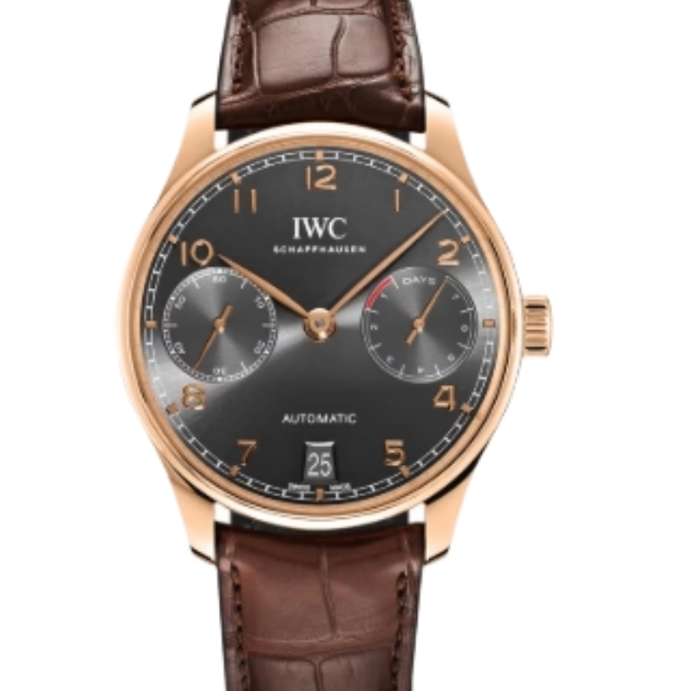 IWC 포르투기즈 Automatic 42mm IW500702 Rose Gold Leather Strap Arabic Numerals Grey Dial[ZF]